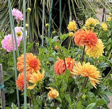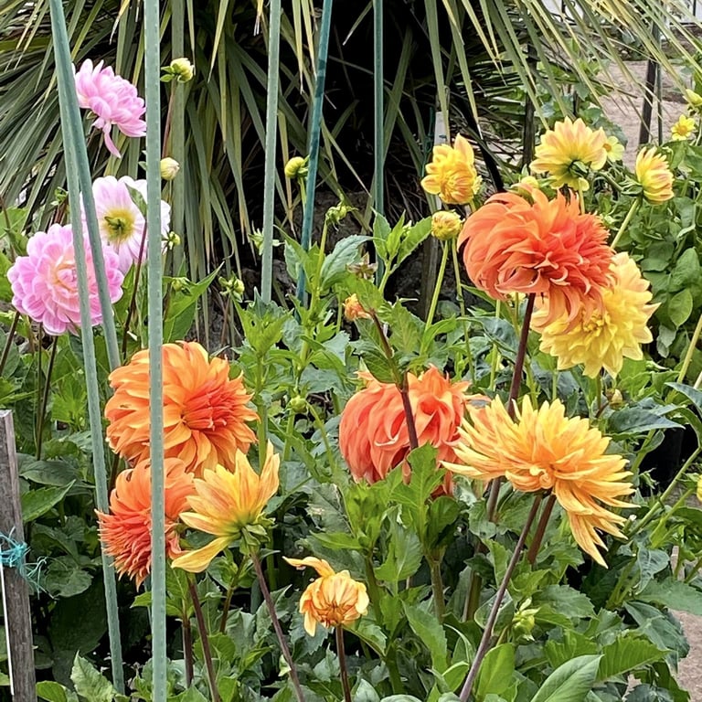 The Dell contains over 700 named dahlia varieties in eye-popping colors and forms, from the tiniest pom (<2”) to the biggest AA (12+”).