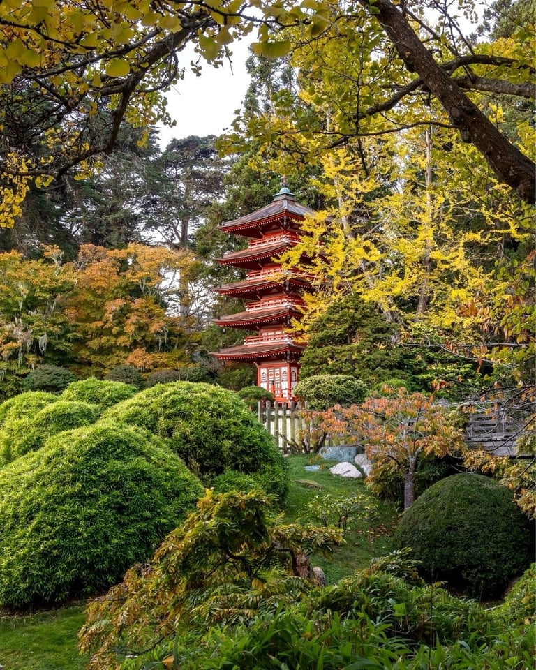 The Japanese Tea Garden, the oldest public Japanese garden in the United States, has provided a tranquil haven within Golden Gate Park since its creation for the 1894 California Midwinter International Exposition. Originally designed by landscape architect Makoto Hagiwara, who tended the garden for decades and introduced the now-familiar fortune cookie to America, this five-acre masterpiece exemplifies the sophisticated art of Japanese landscape design. Visitors traverse stepping stones over koi-filled ponds, cross the iconic drum bridge, and discover quiet nooks among meticulously pruned bonsai trees and towering Japanese maples.