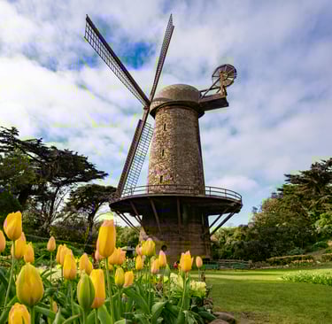 At the west end of Golden Gate Park, the iconic windmills stand as a testament to San Francisco's unique blend of natural beauty and historical significance. This picturesque area features two prominent windmills, the Dutch Windmill and the Murphy Windmill, which were constructed in the early 20th century to pump water for the park's lush gardens. Surrounded by vibrant greenery and colorful flower beds, these structures not only capture the imagination of visitors but also serve as reminders of a simpler time when such innovations were pivotal to urban life. As the wind gracefully turns their sails, locals and tourists alike gather to appreciate the charming scenery, making it a tranquil spot for relaxation, photography, and a touch of history amidst the hustle and bustle of the city. The windmills continue to be a beloved landmark, inviting all who wander by to pause and reflect on the beauty of the park.
